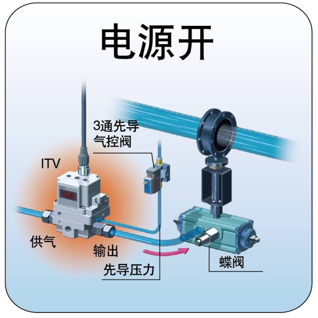電源由于故障被切斷后,為進(jìn)行維護(hù)檢修都要關(guān)閉閥時(shí),通過(guò)將ITV的先導(dǎo)壓力設(shè)為0MPa,排放ITV的輸出側(cè)和閥之間的殘壓。該操作可使元件關(guān)閉。